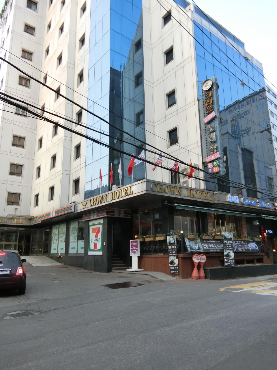 スタッフは日本語を話せる人もいたりします。部屋はツアーだったので、広い部屋ではなかったですが、スーツケースを広げれる広さですし、バスタブもついていますし、毎日水ももらえます。東和免税店や景福宮も歩いていけるところにあります。バス停がホテルの前にあり、市内を移動するのに駅まではちょっと遠かったので、バスが利用できて乗り換えなしで目的地に行けたりと便利でした。