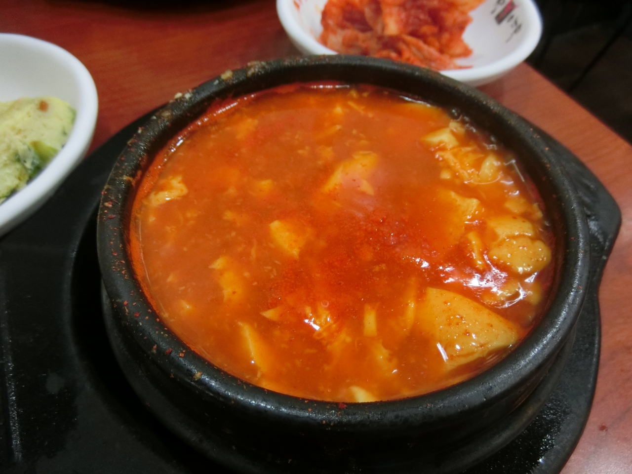 以前からずっと行きたいと思っていたので、明洞に行く予定があったので行ってきました。店内に入ると日本人と地元客半々という感じでした。お店の方は日本語が少し話せました。一番人気というスンドゥプチゲを注文しました。辛すぎずちょうどいいおいしさでした。おかずもおいしく、値段もお手頃なので、またスンドゥプを食べたくなったら行きたいお店です。