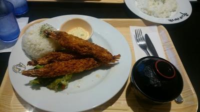 カフェ飯としては、ハンバーグなどもありますが、わたしのオススメは、有頭海老フライ!