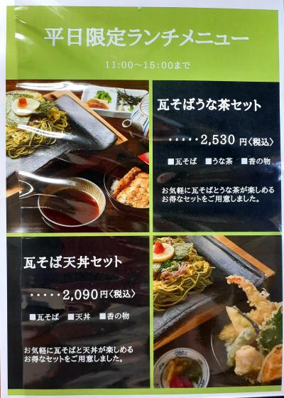 ランチは、瓦そばに、ミニサイズの鰻飯がついて、リーズナブル♪