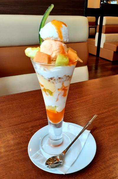コースメニューを注文する時は、少食のひとはパフェを選んだほうが無難です。