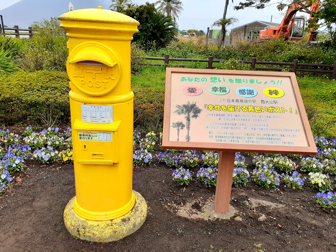 JR最南端の駅、西大山駅の目の前にある、幸せの黄色いポスト(*^^*)