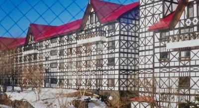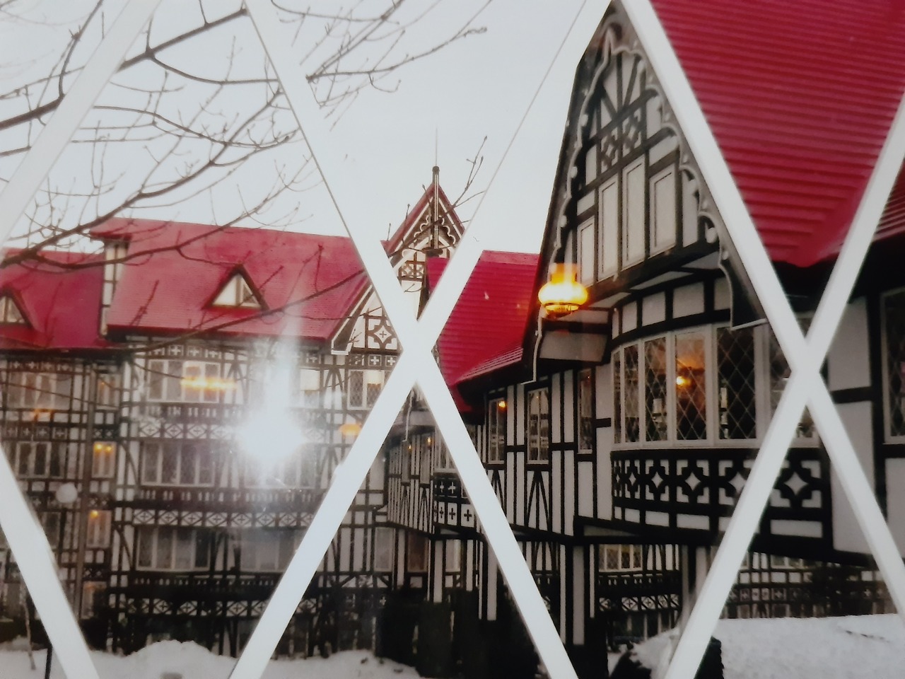 ホテルの屋根の赤と、雪景色の白とのコントラストが、とっても素敵。