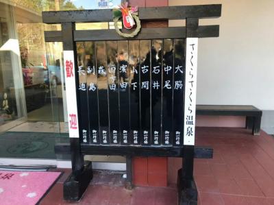 個人旅行だと、よほど大人数でない限り、旅館入り口の歓迎立て札に名前なんて書いてませんが、さくらさくら温泉さんには、『歓迎 ○○家 御一行様』とあり、ちょっと嬉しい?気分になりました。