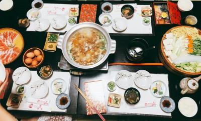 夕食は、部屋食でした。大晦日だったので、紅白を見ながら、豚しゃぶ鍋を囲む予定が……夕食時間は7時の予定でしたが、8時になっても用意に来られず。あまりにお腹ペコペコだったので、フロントへ電話。年末年始でお客様が多く、遅れているとの事(涙)ようやく、夕食の用意は8時半過ぎた頃でした(泣)