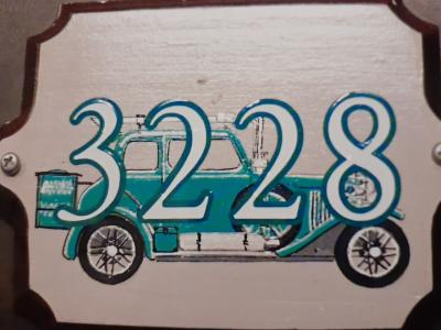 部屋のドアには、それぞれ違う絵が描いてあるプレートが。わたし達が泊まった部屋は、クラシックカーでした。