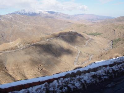 ここはどこ?アフリカのモロッコです。前日の雨でアトラス山脈は雪景色。一...