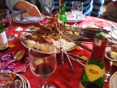 アトラス山脈を越えてマラケシュに到着。お昼は、ちょっと立派なところへ。