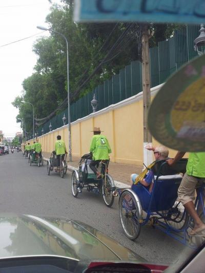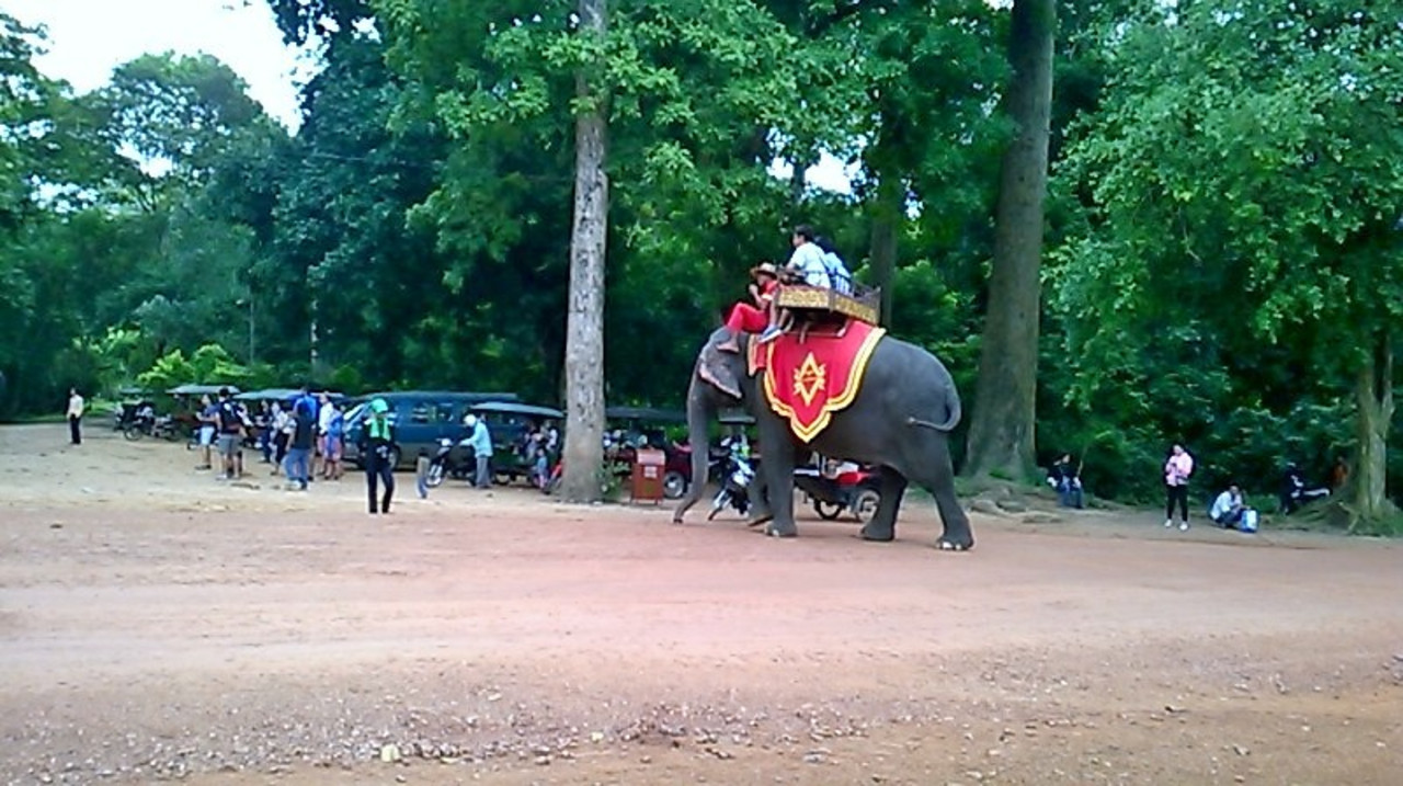 アンコール・トムの南大門からバイ寺院までに象さんの運動は毎日に営業してる。$20を書いてある、曖昧な意味ですが、一人で$20ははっきりを書けば良いと思います。