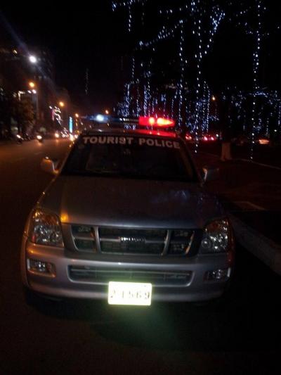 プノンペンの夜はスリートポリスのパトカーがございます。独立記念塔の付近とメコン川沿いのナイトマーケット等にパトロールが必要です。一人で歩かない他が良いと思います。トウクトウクに乗る時にはカバンを注意してください。
