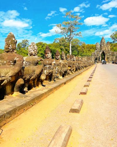 アンコールトムの南大門には午前には行って来ましたが観光客がたくさん来ました。午後からには行って来ました♪、訪れた方が少なくなりました。アンコールトムの南大門の夕焼けがとても素晴らしかったです。