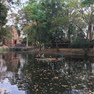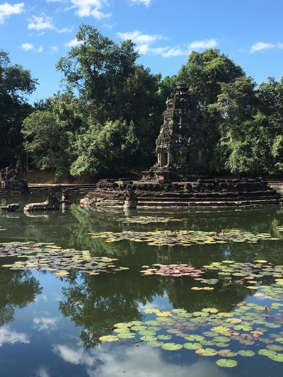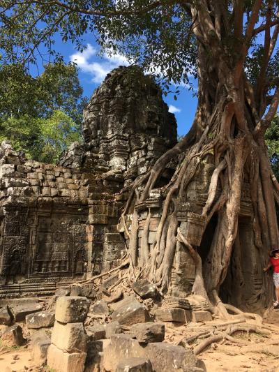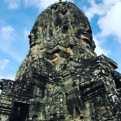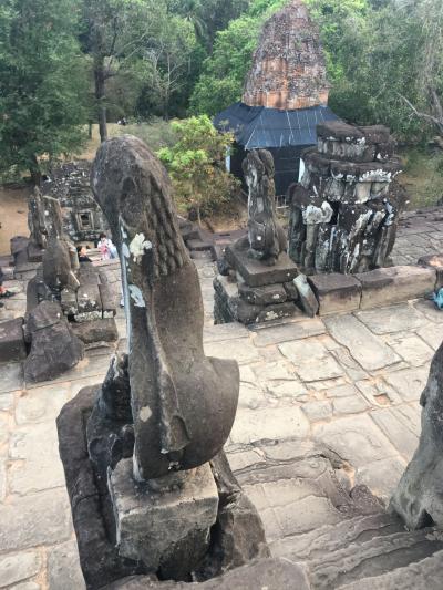 アンコールトムの南大門には午前中にたくさんの観光客が訪れてた。車やバイクなどに多くて、交通のことが大変でした。でわ遺跡が素晴らしいかったです。
