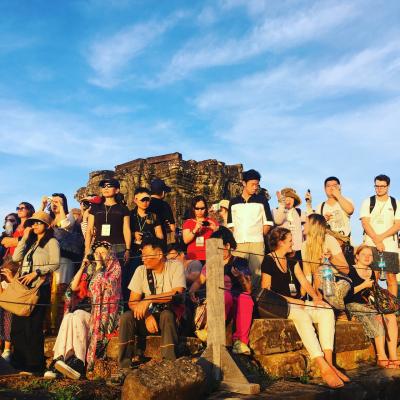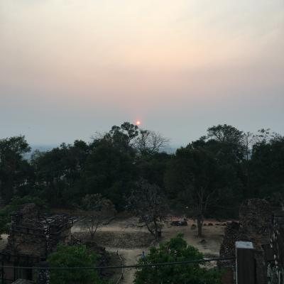 アンコールワットの世界遺産のプノンバケン夕日にはたくさんありましたが3時30分に来ました。ほかの観光が少ないかった。長い時間に待ったて来ました。景色と夕日が素晴らしかった。良かった。