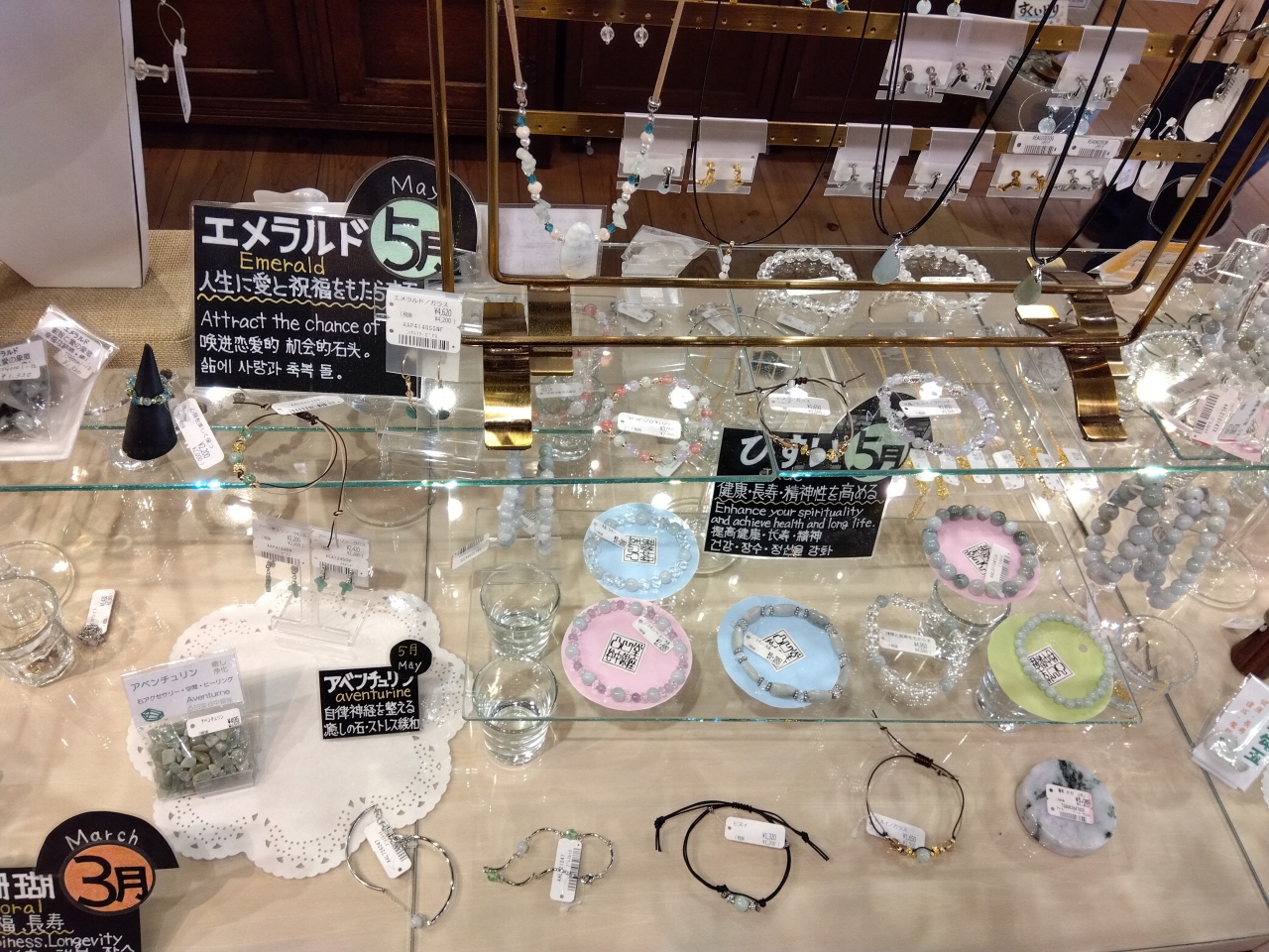 とんぼ玉やガラスのアクセサリーがいっぱい。