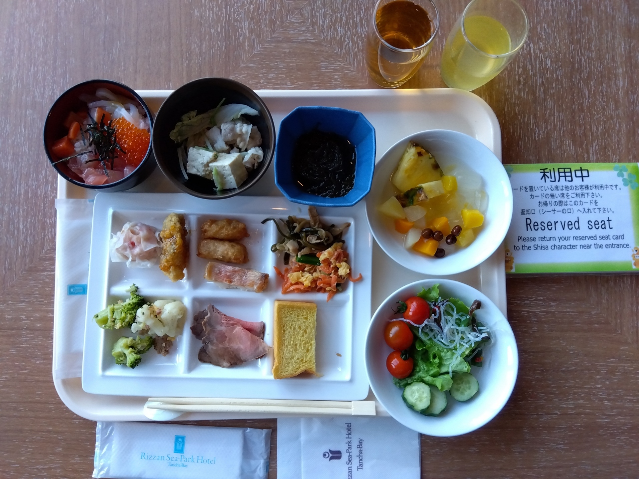 自分で作るシリーズ、海鮮丼、ポーク玉子おにぎり、サンドウィッチ、ローストビーフ丼、豚しゃぶ、などもありました。- 旅行時期