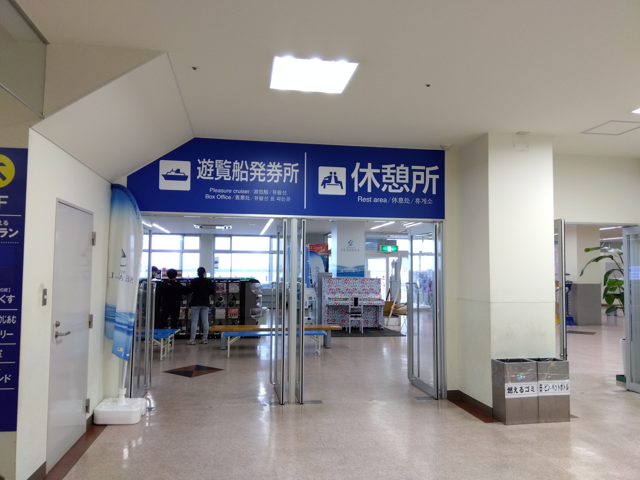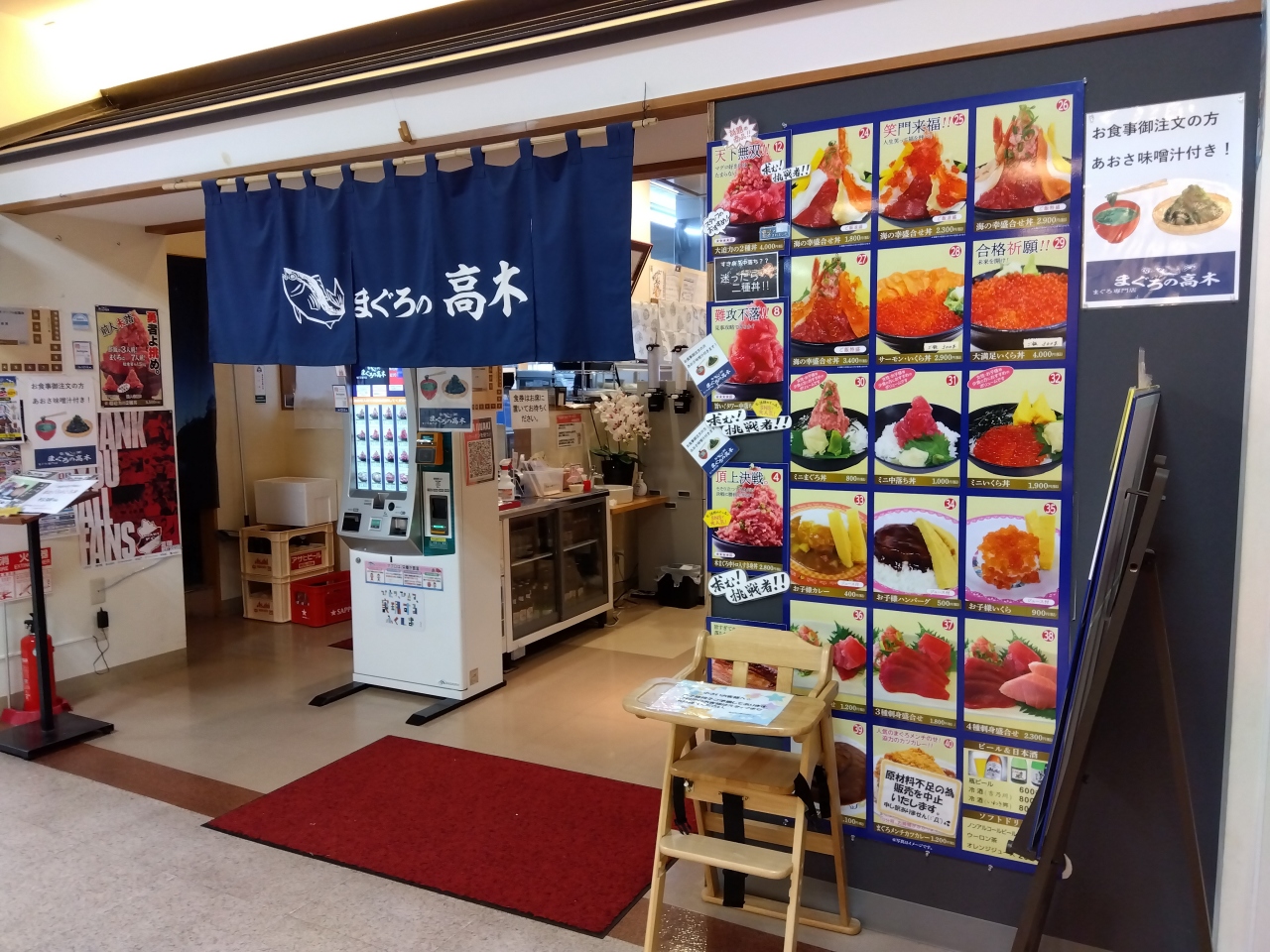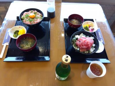「まぐろの高木」でランチをして、インフォメーションと観光遊覧船チケットカウンターで「マンホールカード」をもらいました。「まぐろの高木」は、入口で食券を購入、空いている席に座り、お茶と漬物はセルフで、自分で下膳する仕組みです。