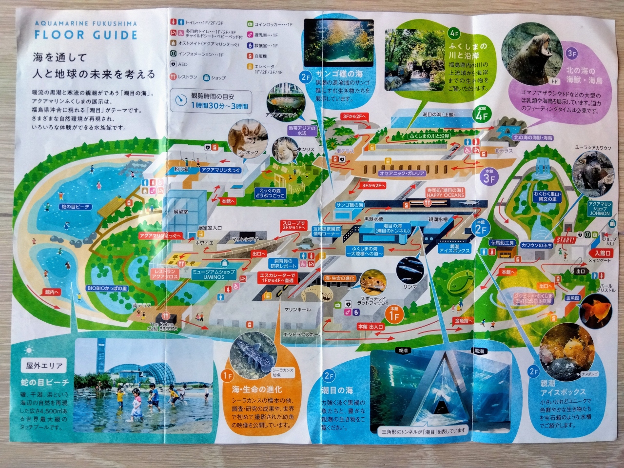 子供向けの体験プログラムが多く、水槽の高さがこども目線(大人は中腰で)、遊具もあり動物もいます。