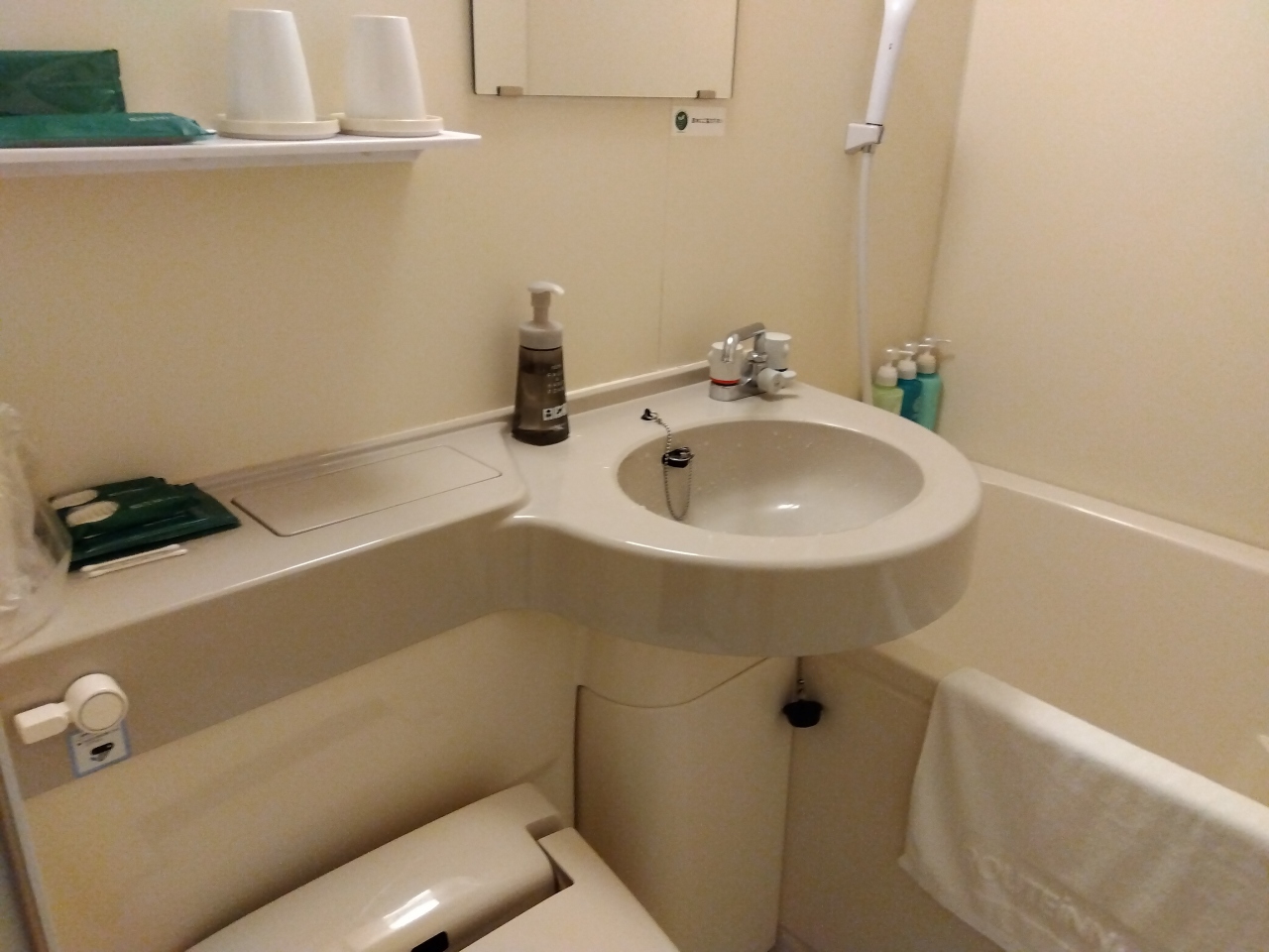 電気をつけても部屋全体が薄暗く、コンセントが枕元にないのが不便だけど、キレイに掃除されています。