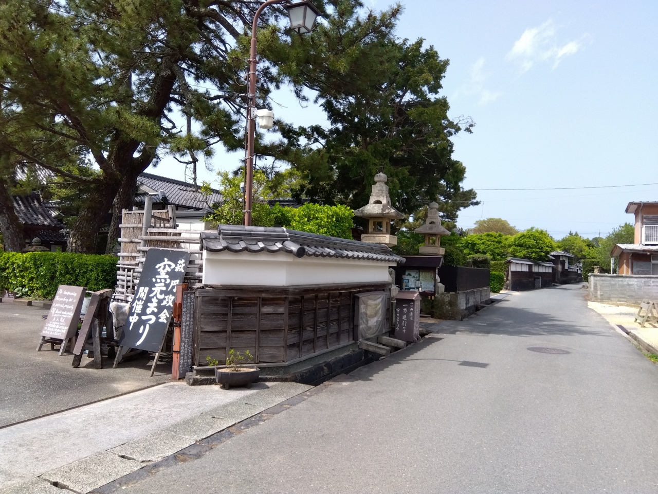 土塀で囲まれた通りには、幕末に活躍した武士ゆかりの建物や萩焼店などがあります。
