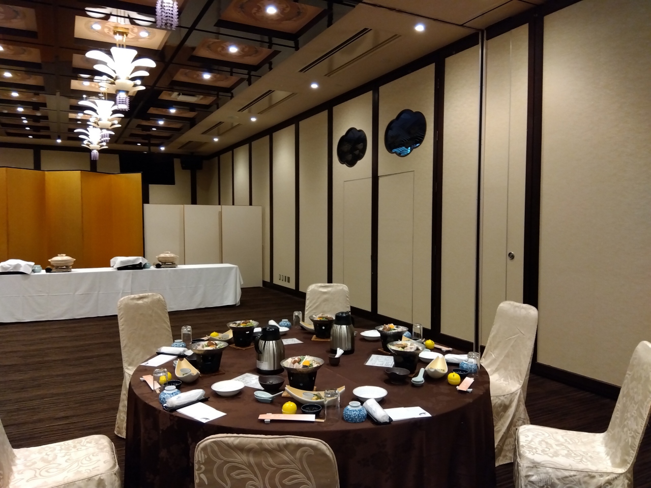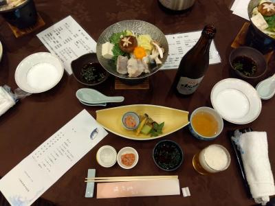結婚式会場のような「鳳凰の間」で、一度は食べてみたい「ふく会席」を堪能しました。