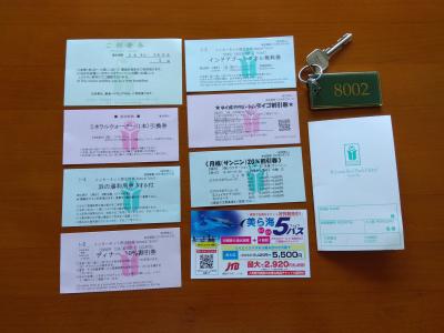 チェックイン時に、無料券、引換券、割引券などをもらったけど、使ったのは「ミネラルウォーター1本引換券」(部屋にない)と「浜の湯利用権タオル付」だけです。