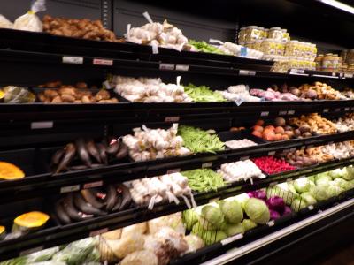 「自然食品・デリカテッセン」のコーナーには、山形県の野菜や果物を使用したジャム、ドレッシング、デザートがオシャレに陳列されていて、彩りも鮮やかで、どれも魅了的。米沢の伝統野菜「雪菜」と「うこぎ」のドレッシングを購入。