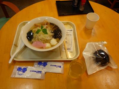 施設内のほぼ半分が食事処、6カ所もあります。和食、海鮮、ラーメン、平田牧場の直営店も。軽食コーナーで「磯おにぎり」250円を購入するつもりが、ラーメンも食べたくなってしまい、「庄内鯛ラーメン」900円を。だしの効いた優しい味の塩ラーメン、麺も美味しかったです。- 旅行時期