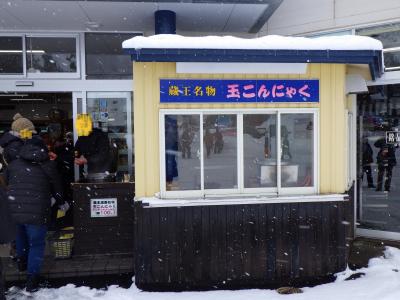 蔵王山麓駅の向かい側にある土産店。スキーウエア、板、ボードのレンタルもしており、レンタル客で賑わっていました。店頭でたまこんにゃくを販売しています。土産売場はこじんまりとしているけど、地酒やワインなどのアルコール類の品揃えがよかったです。