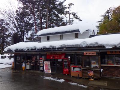 朝食はハーフバイキング形式、といっても和定食+たまこんにゃく、おみ漬け、カレー。窓側の席からは雪景色を一望できます。