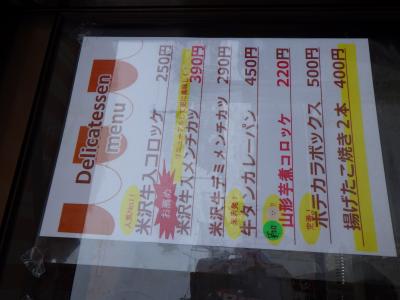 外にある「米沢牛デリカテッセン」で、米沢牛入コロッケ250円と米沢牛入メンチカツ390円を購入。390円って高いけど、旅先では財布のひもが緩くなってしまいます。- 旅行時期