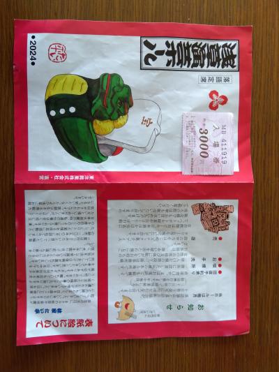 東洋館オリジナル「東羊羹」はおみくじ付の羊羹で、大吉が出ると、東洋館の招待券がもらえます。3個購入、吉、半吉、末吉でした。