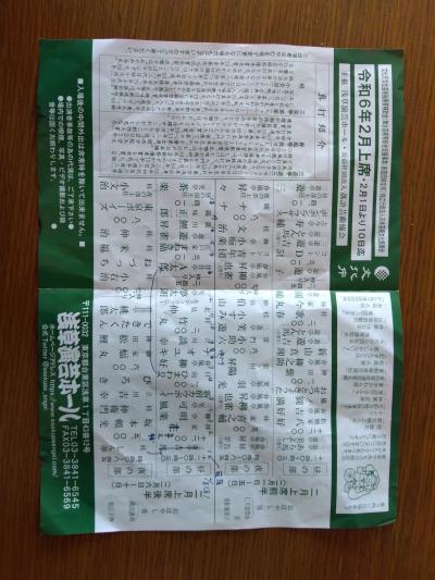 二月上席後半、昼の部(11:40-16:30)を観覧。落語芸術協会主催の期間。