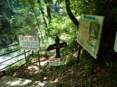 昨年9月の台風14号の被害で、高千穂遊歩道の一分(槍飛橋〜滝見台)が通行止め、「鬼八のちから石」付近を見ることができません。この辺りは前回見ているから諦めついたけど、せっかく来たのに見ることができないなんて残念すぎます。
