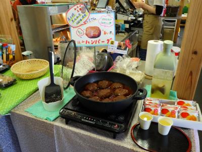 「宮崎ひでじビール」、高千穂牛100%使用「煮込みハンバーグ」、まんじゅう。追加で、圏内産鶏使用「鬼八の唐揚げ」。
