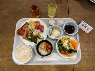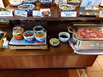 朝食バイキングは、魚の天ぷら、チャンプル、沖縄そば、郷土料理がいっぱい、新鮮なまぐろの刺身も食べ放題、パイナップル、サーターアンダギー、アイスクリームなど、全部美味しくて、毎朝食べ過ぎました。
