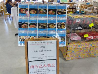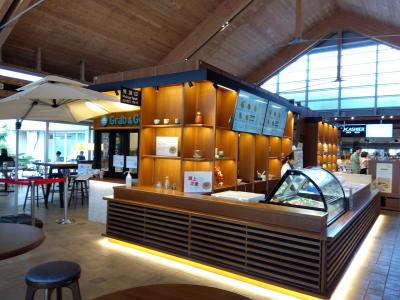一般的なレストランや軽食コーナーがなく、弁当類もほぼ品切れで、あるものを購入して、外のテーブルで食べました。