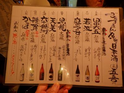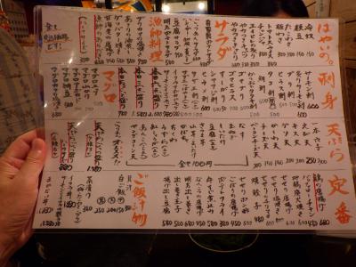 お通しの枝豆は一人300円。生ビール400円、ハイボール400円、日本酒550円。ドリンクが安い。