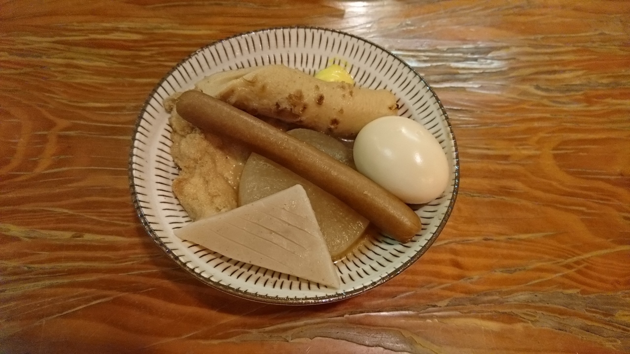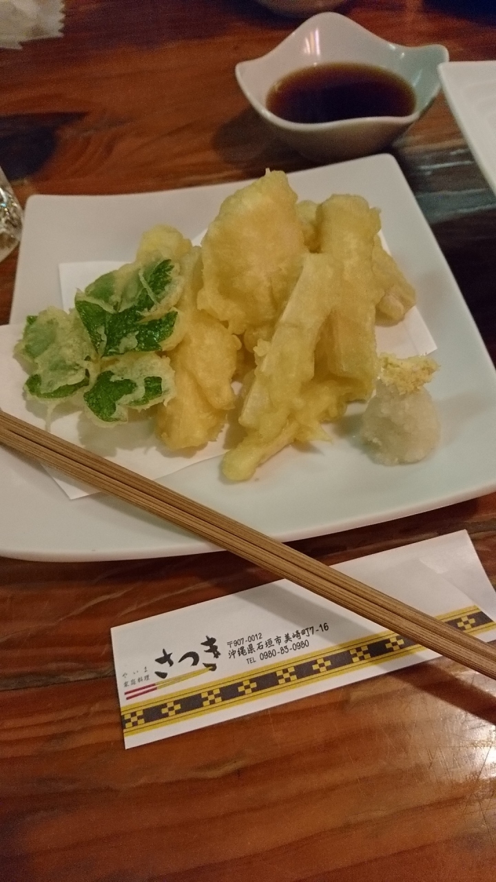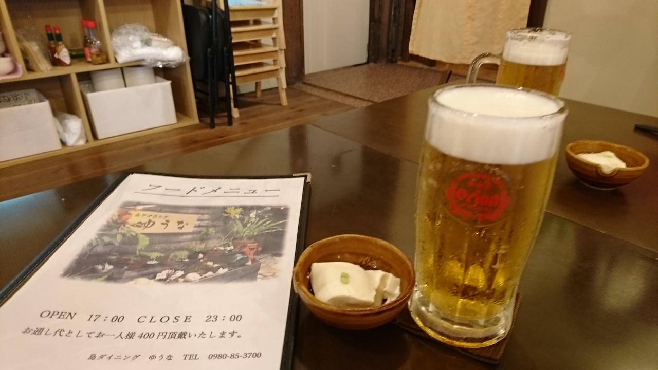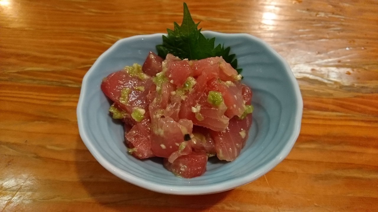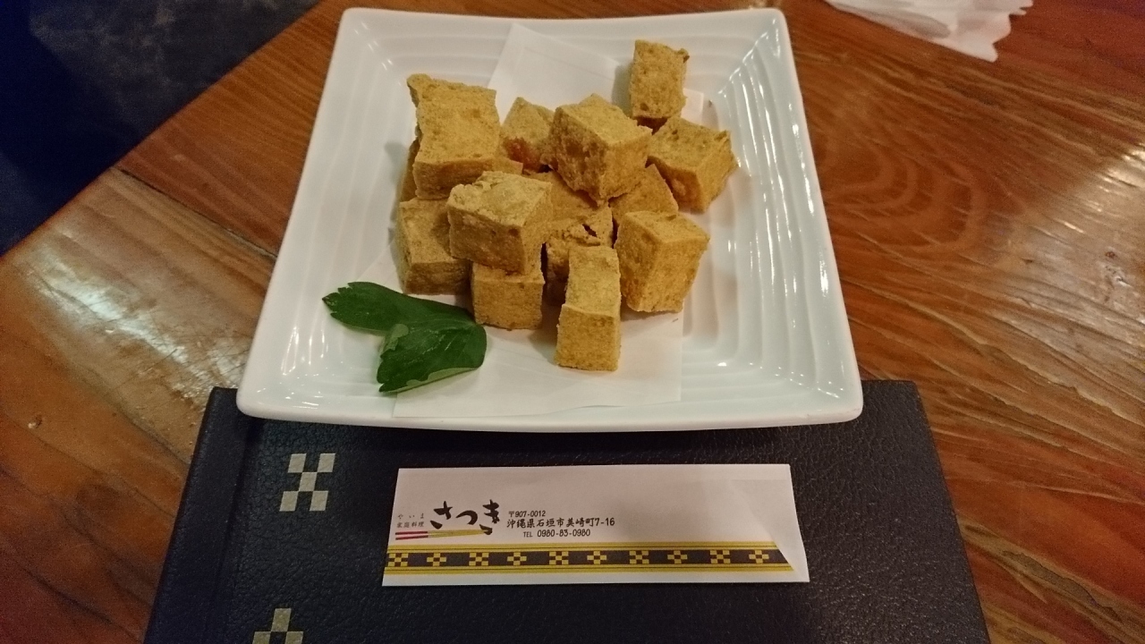 メニューの種類が多くて、どれも魅力的、厳選した5品を注文しました。マグロのしゃきしゃきわさび和え、人気No1の島豆腐のガーリック揚げ、アダン天ぷら、おでん、アグー豚焼き餃子。どれも期待以上の美味しさで大満足。