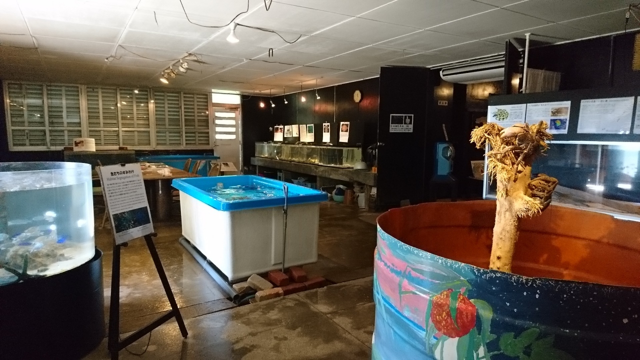 ウミガメなどの海洋生物の研究所。館内は、動物や民具の展示と水族館に分かれています。