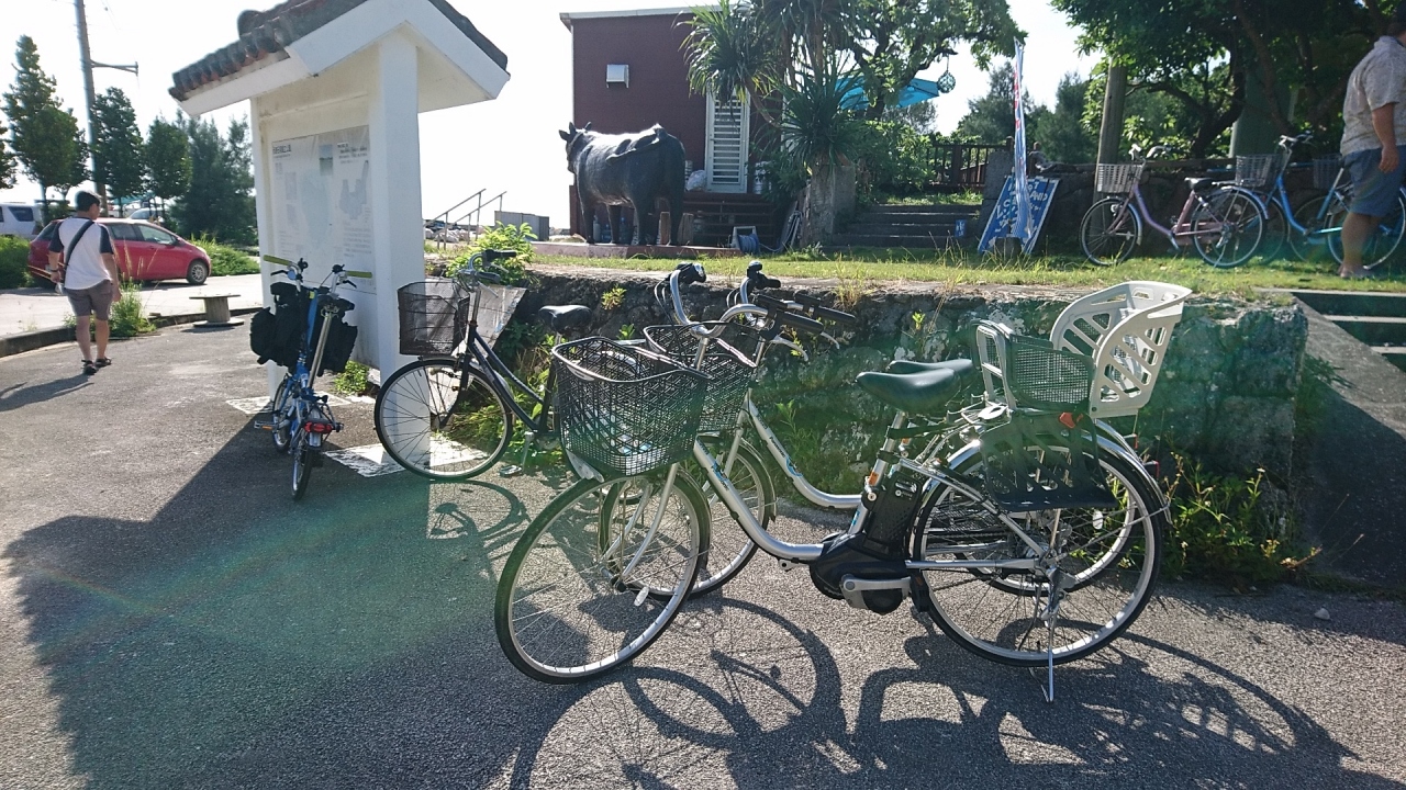2時間まで、4時間まで、1日という単位ですが、帰りのフェリーまで約4時間なので、4時間を勧められました。黒島は平坦なので普通自転車でもいいのですが、体力を考慮して電動自転車4時間2,500円にしました。(普通自転車は1,300円)