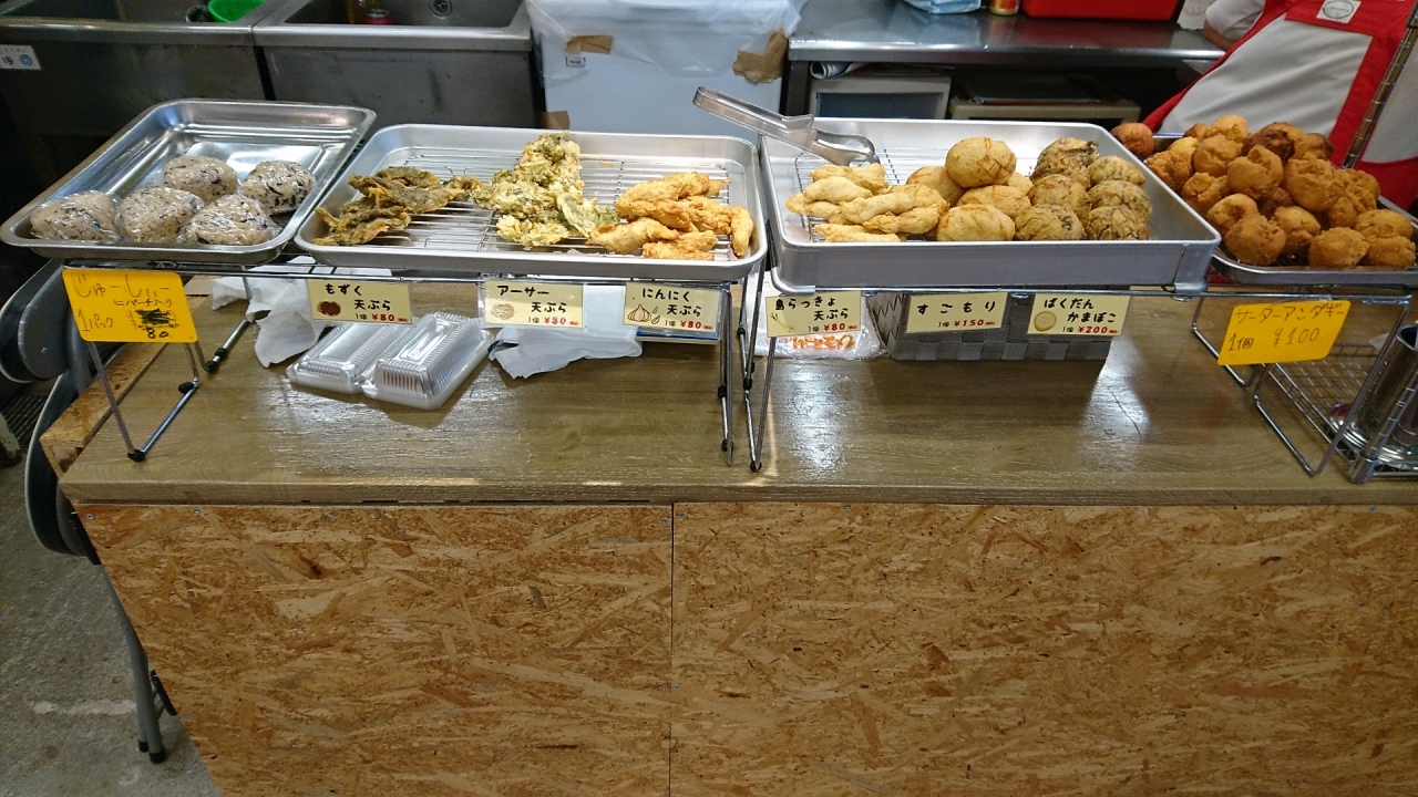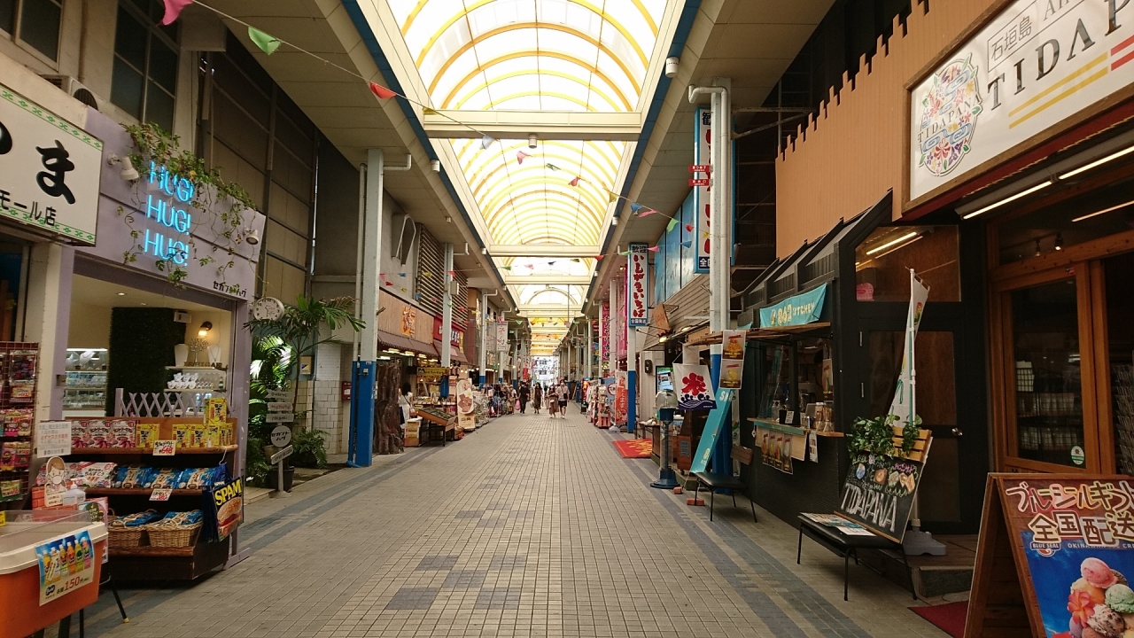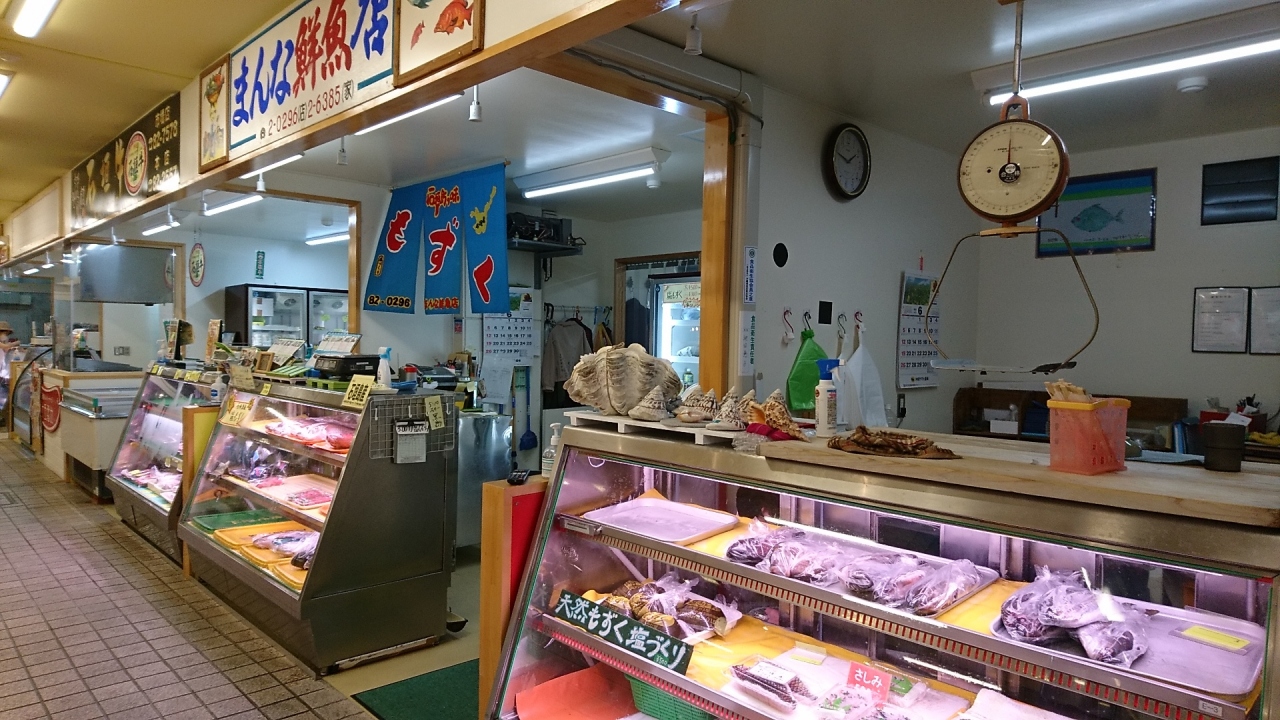 1階には、肉屋、魚屋、かまぼこや、果物屋、スイーツ店、お土産屋などがあります。