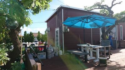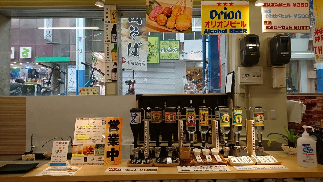 新しくできたイートインスペースで、生ビールとかまぼこで一杯やりました。八重山そばやポーたまおにぎりを食べている人もいましたが、その前に席を確保しなければなりません。