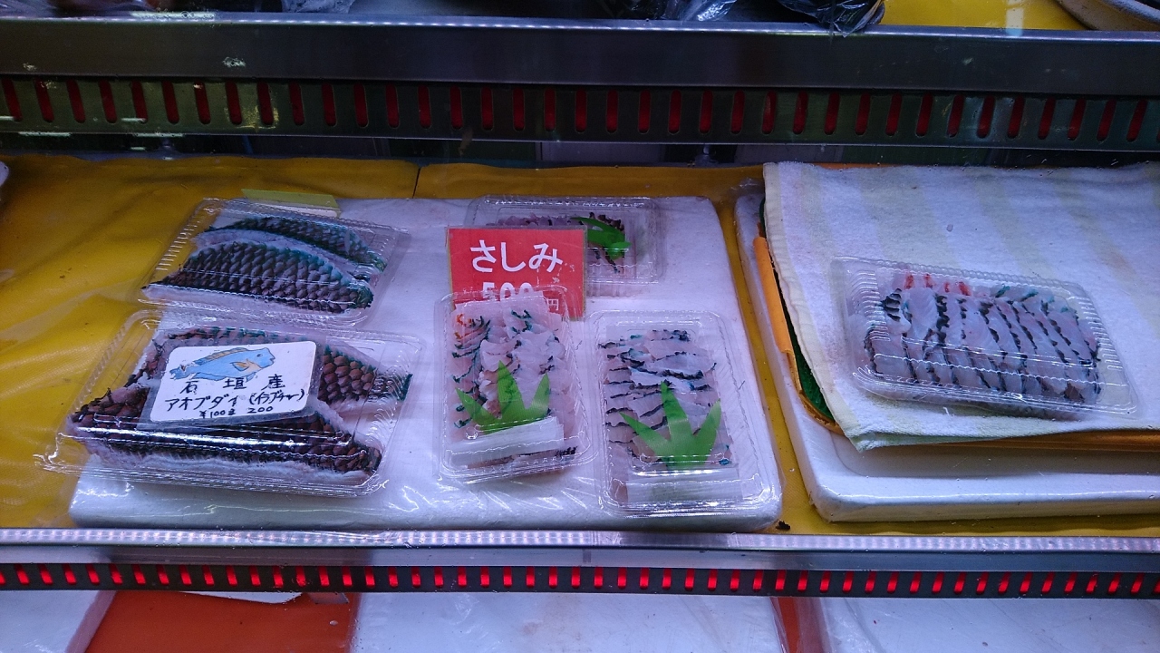 部屋食のつまみにイラブーチャーの刺身を購入、パックにぎっしり詰まっていて500円でした。