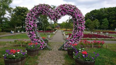 園内は、ワンパク王国、メルヘンの丘、子ども美術館、自然体験、花の城に分かれています。テントを張っている人が多く、特に子どもに人気のワンパク王国ゾーンはテントだらけでした。ちびっこミニカーひろばでは、係員が「大人もどうぞ」と言ってくれるので、100円でパンダカーに乗り1周ちょっとできました。どこも緑と花がいっぱいで、花の城ゾーンの「ハートのトピアリー」は撮影スポットで、スマホを置ける撮影台があります。デンマークの風景を再現したメルヘンの丘ゾーンの風車のまわりは企業花壇になっています。千葉県や船橋市の企業が協賛しているようです。とにかくキレイな花がいっぱいで、アンデルセン童話をテーマにした花壇が可愛らしかったです。写真を撮り過ぎてしまいました。