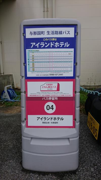与那国空港から約1キロ、祖納の集落まで約2キロ、と立地もよく、生活路線バス(無料)の停留所もあります。ホテルにはレンタサイクルもありました。