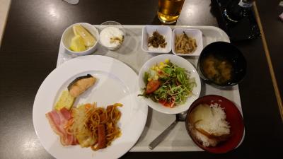 朝食付プランで、館内の唯一のレストラン七彩で和洋折衷のバイキングでした。このレストランは、朝食、昼食、喫茶、夕食営業をしており、昼食と夕食では島民の利用も多いようです。昼食は定食メニュー、夕食は居酒屋メニューと定食メニューでした。迷わず注文したのは刺身盛り合わせ(2~3人前)1,600円、厚切りの切身が5種類にいくらもついていました。どれも近海で捕れたものらしく、新鮮で美味しくて、大満足。