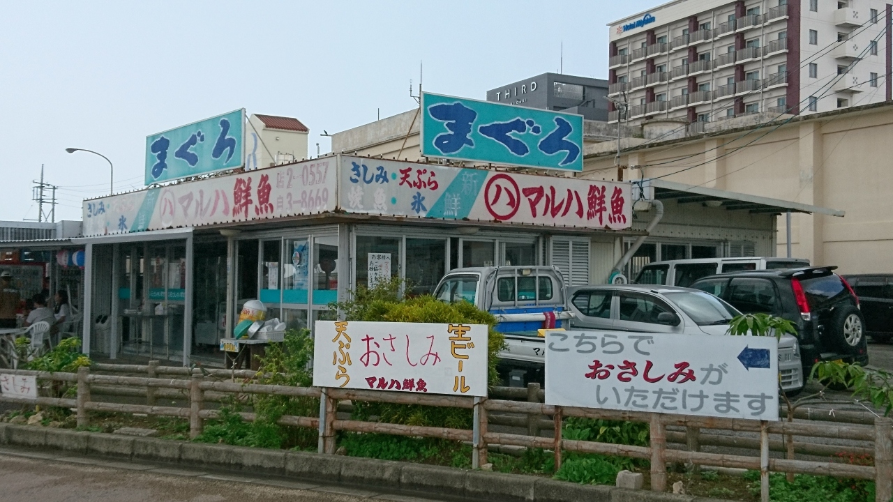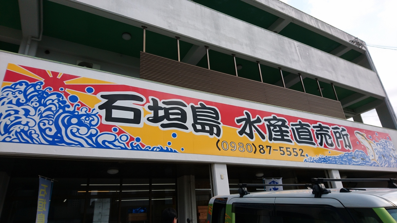 石垣島の水産会社の直売所です。離島ターミナル付近に宿泊しており、石垣市の中心地からは約2キロの道のりを、行きはバスを利用、帰りは歩きました。
