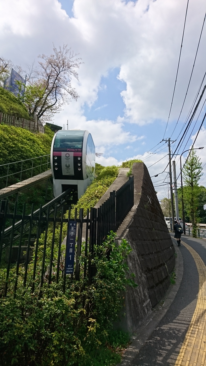 王子駅中央口の前の「飛鳥山公園入口」と「飛鳥山山頂」を約2分間で結ぶ小さなモノレールです。カタツムリに似ているので「アスカルゴ」といいます。なんと無料です。係員が人数を数え、乗り降りの案内をしてくれます。山頂では待たずに乗れましたが、公園入には30人ぐらい並んでいました。王子駅側の入口は階段だし、いつもは見ることができない景色を見られるので、また利用したいです。