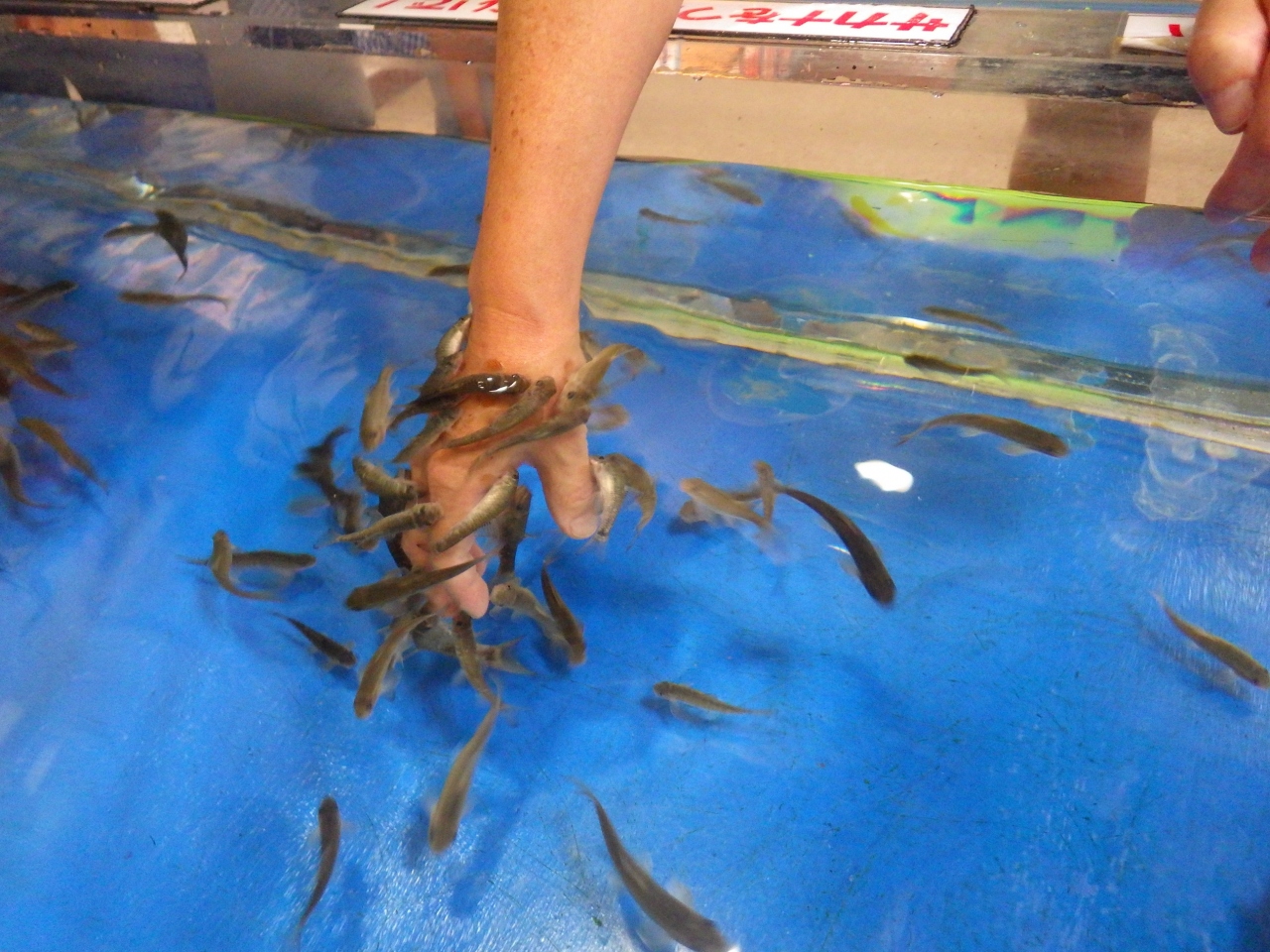 イベントホールには、ドクターフィッシュタッチング水槽があり、手を入れるとドクターフィッシュが手にまとわりつき、気持ちいいような不思議な感覚でした。