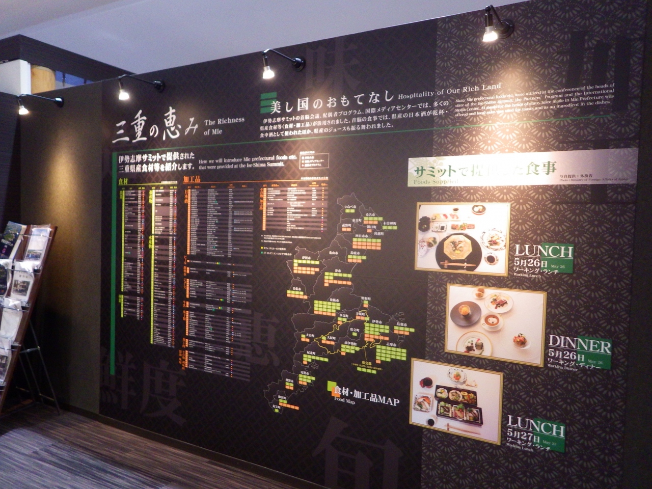 サミットの様子や提供した食事の写真、首相に贈呈した品々なども展示されています。